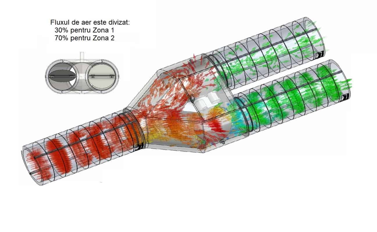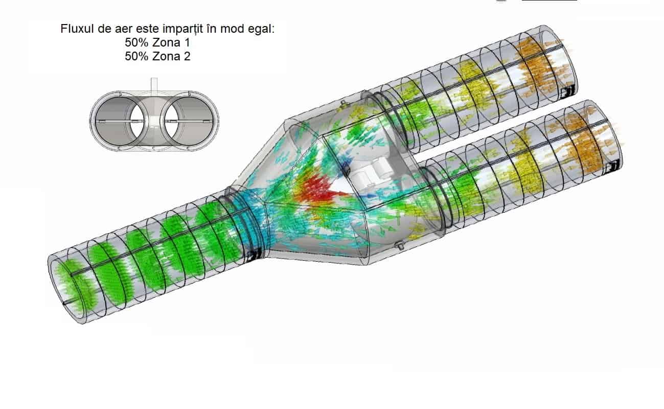 Dispozitiv zonare flux aer – este dedicat sistemelor de ventilatie centralizate rezidentiale cu rolul de a imparti fluxul de aer in doua.
