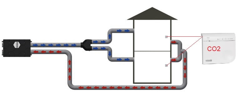 Casele rezidentiale sunt in general divizate in 2 zone: de zi si de noapte, pentru a creste confortul locatarilor. Senzorii montati in cele doua zone, transmit informatii despre nivelul de CO2 si de umiditate catre dispozitivul inteligent HRQ-2Zone.
