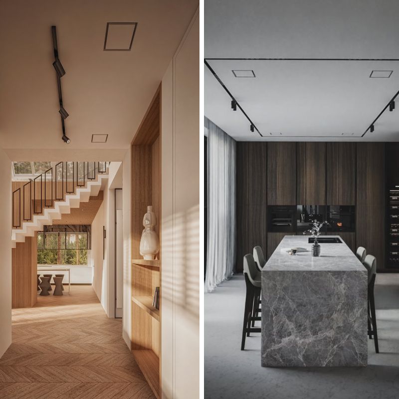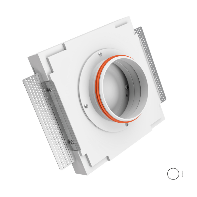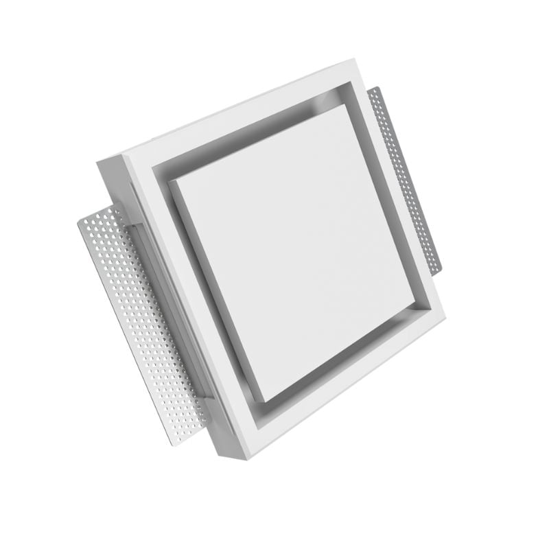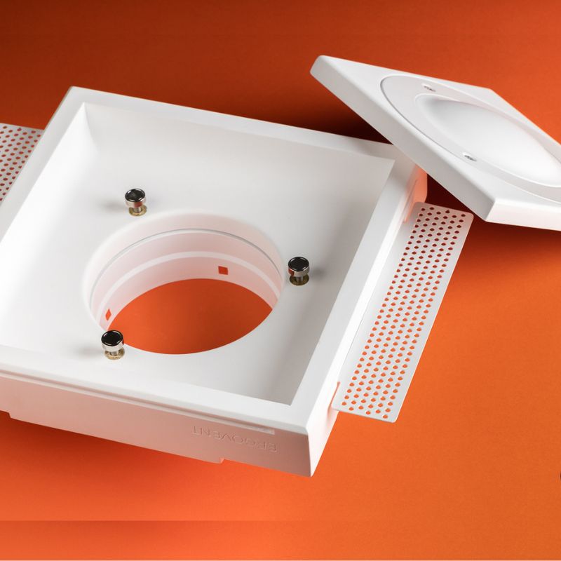 Fabricat din gips, anemostatul Kvadro se integreaza armonios in tavanul sau peretii de rigips, devenind practic insesizabil datorita capacitatii sale de a fi vopsit in aceeasi nuanta cu suprafata in care se monteaza. Textura uniforma si aceeasi cromatica cu restul suprafetei il fac pur si simplu invizibil.