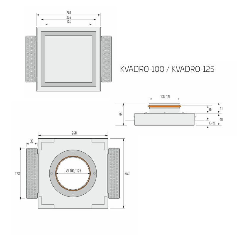 Anemostatul Kvadro se bucura de aprecierea arhitectilor, designerilor de interior, specialistilor in ventilatie si a contractantilor de finisaje interioare datorita practicitatii, esteticii si usurintei in instalare. Ele indeplinesc cu succes functia pentru care au fost create, oferind in acelasi timp libertate in plan arhitectural. - Este compatibil cu sistemele de ventilație standard : Anemostatul Kvadro se potriveste perfect cu orice sistem standard de conducte de ventilatie DN 100, 125.