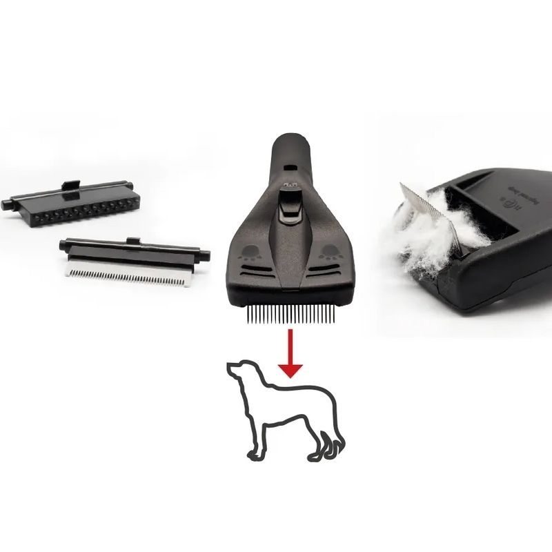 – Perie de îngrijire pentru animale de companie, cu trei piepteni interschimbabili adaptabili la diferite tipuri de blană