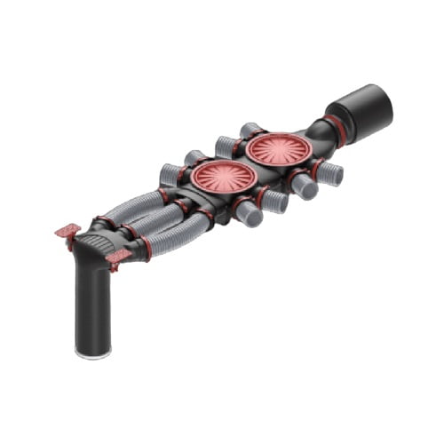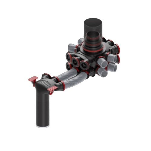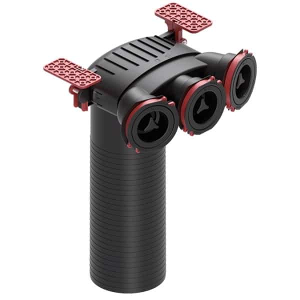Plenum Aria la 90° pentru tub DN 3 x 75 – DN 125, cu dopuri si garnituri