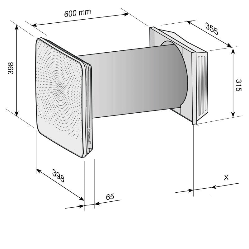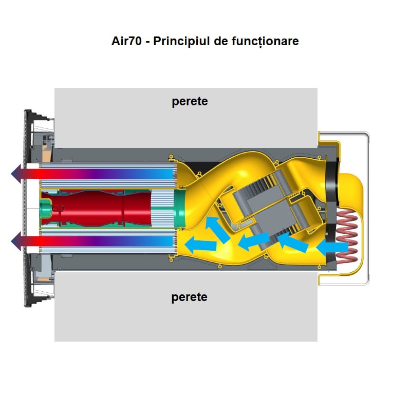 Unitate compacta de ventilatie cu recuperare de caldura, ce poate fi complet incorporata in peretele exterior, fara sa mai fie nevoie de tubulatura de ventilatie.