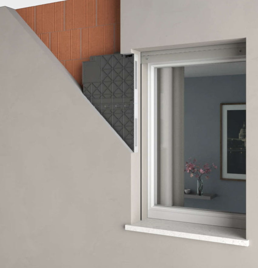 Forma carcasei permite instalarea recuperatorului de caldura in stratul exterior de izolatie termica, astfel incat, sa nu afecteze arhitectura cladirii.
