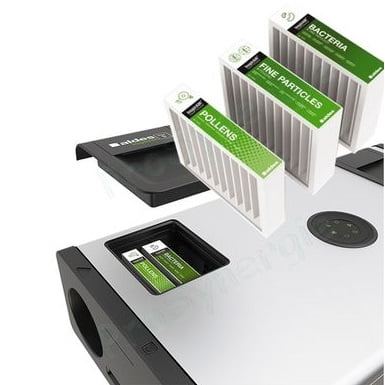 - Purifica aerul introdus datorita setului de filtre: pentru polen, particule de praf, VOC si bacterii