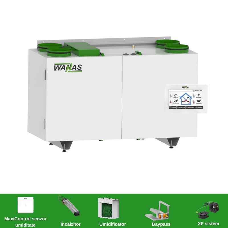 Unitățile WANAS sunt echipate cu schimbătoare moderne de căldură cu flux încrucișat, realizate din materiale rezistente, care asigură valorificarea optimă a energiei din aerul evacuat și reduc necesarul de încălzire suplimentară.
